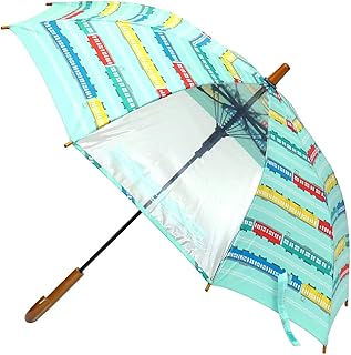 アテイン(Attain) 長傘 男児ポンジー トレイン 水色 親骨50cm グラスファイバー骨ジャンプ傘 1315
