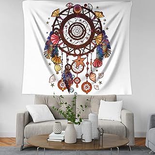 (S/130cm x 150cm , 3 dreamcatcher) - DIPPERION DreamCatcher Tapestry Wall Hanging Dream Catcher Wall Tapestry Hippie Tapestry Colourful Tapestry Psychedelic Bohemian Feather Wall Tapestry for Bedroom Decor