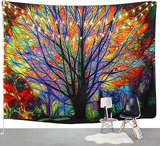 (130cm x 150cm, The Tree) - BLEUM CADE Colourful Tree Tapestry Wall Hanging Psychedelic Forest with Birds Wall Tapestry Bohemian Mandala Hippie Tapestry for Bedroom Living Room Dorm