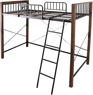 Edith ロフトベッド ハイタイプ アイアンベッド シングル 棚コンセント2口付 /ブラウン-ブラック
