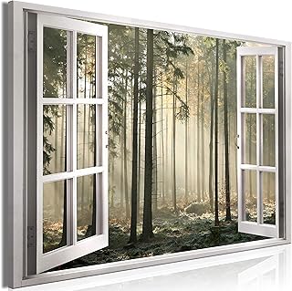 artgeist キャンバス ウォール アート プリント ウィンドウ ビュー 60x40 cm / 24x16インチ 1個 ホーム インテリア フレーム ストレッチ 写真 写真 絵画 アートワーク イメージ - 森 霧 風景 自然 c-C-0366-b-a