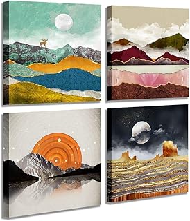 抽象 幾何学水彩画 壁装飾 鹿 山 川 風景 砂漠 森 日の出 風景 プリント 画像 キャンバス ウォールアート リビングルーム バスルーム オフィス ホームインテリア 14インチ x 14インチ