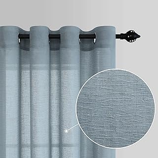ナチュラルリッチリネンカーテン セミシアー 寝室/リビングルーム/ダイニング用 グロメットトップ テクスチャ加工 亜麻 ウィンドウカーテンドレープ プライバシー追加 ライト低減 ソフトカーテン 2パネル (ストーンブルー 幅52インチ x 長さ96インチ)