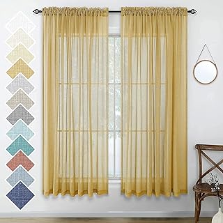 キッチン用ゴールドシアーカーテン 長さ63インチ 2ロッドポケット ライトフィルター 半透明 ウィンドウドレープ ゴールドイエローカーテン 寝室 リビングルーム ホーム オフィス 農家 田舎風 長さ52 x 63インチ